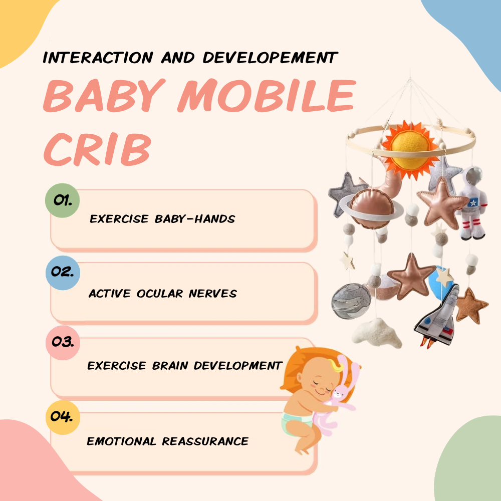Every moment your baby spends watching the Noliboobaby mobile is a time of active learning and growth. By visually tracking the different elements, your baby strengthens eye muscles and develops spatial awareness, skills that will later support crawling, walking and even reading.