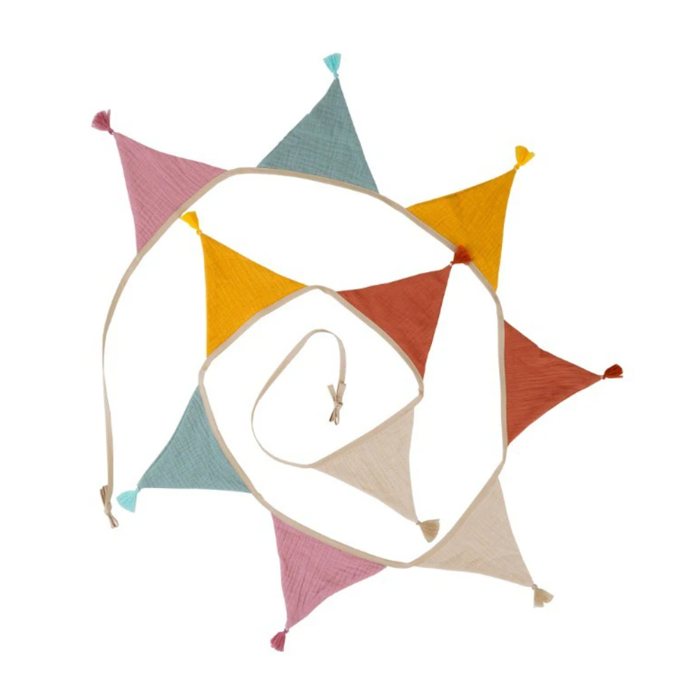 Add a soft decorative touch to your baby’s room, playroom, or birthday party with our cotton pennant garland. This minimalist garland is made of hand-crafted cotton flags in a soothing shade, offering an elegant and timeless accent to any child’s space.